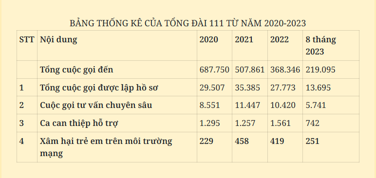 Đặc biệt, các vấn đề về trẻ em trên môi trường mạng đã được tiếp nhận, xử lý, phân tích qua Tổng đài 111.
