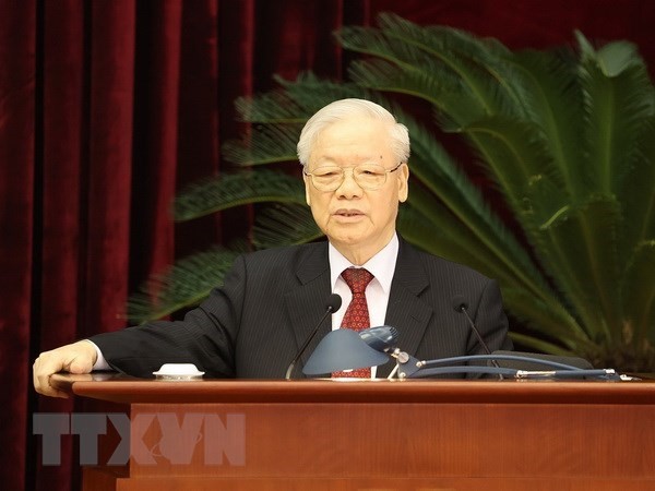 Tổng Bí thư Nguyễn Phú Trọng phát biểu bế mạc Hội nghị. (Ảnh: Trí Dũng/TTXVN) Tổng Bí thư Nguyễn Phú Trọng chủ trì Hội nghị. Chủ tịch Quốc hội Vương Đình Huệ điều hành phiên bế mạc.