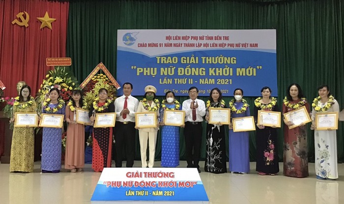 Ban thường vụ Hội LHPN tỉnh Bến Tre đã vinh danh, khen thưởng 5 tập thể, 12 cá nhân xuất sắc trên các lĩnh vực của đời sống kinh tế - xã hội được trao Giải thưởng Phụ nữ Đồng Khởi mới lần thứ II năm 2021 với sự đồng hành của Công ty Cổ phần Tập đoàn Xuân Nguyên tài trợ toàn phần kèm theo Giải thưởng biểu trưng, quà tặng và tiền mặt 5.000.000 đồng/ tập thể, 3.000.000 đồng/ cá nhân.