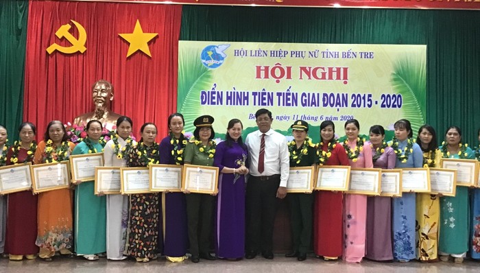 Các mô hình hiệu quả tiết kiệm theo Bác được gần 14 tỷ đồng; vận động trên 80,3 tỷ đồng xây dựng 71 nhà tình nghĩa, 1.016 mái ấm tình thương, tặng trên 131.000 phần quà, 45.000 suất học bổng, đồ dùng học tập... cho phụ nữ, trẻ em nghèo, khó khăn trên địa bàn; Vận động nguồn lực tổng trị giá gần 2,6 tỷ đồng hỗ trợ công tác phòng chống dịch Covid -19, trên 2,8 tỷ cho công tác phòng chống, ứng phó hạn mặn. Hội LHPN các cấp hỗ trợ 35 mô hình khởi nghiệp, 9 mô hình khởi sự kinh doanh, 951 phụ nữ khởi nghiệp và 234 phụ nữ khởi sự kinh doanh thành công. Qua tổng kết phong trào thi đua, bình xét điển hình tiên tiến giai đoạn (2015-2020), toàn tỉnh có 8.184 gương điển hình tiên tiến các cấp (1.524 tập thể, 6.660 cá nhân), trong đó có 107 tập thể, 35 cá nhân được Trung ương Hội LHPN tặng bằng khen; 56 tập thể, 197 cá nhân cán bộ Hội được Ủy ban Nhân dân tỉnh tặng bằng khen.