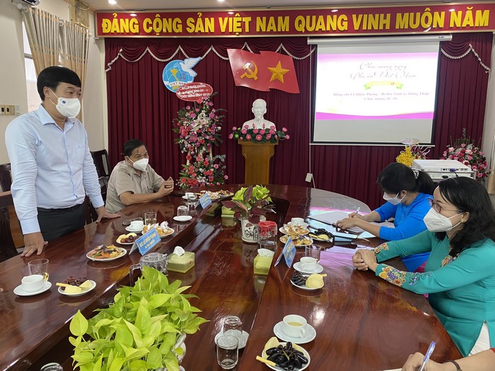 Bí thư Tỉnh ủy Lê Quốc Phong tặng hoa Hội LHPN tỉnh nhân kỷ niệm 91 năm thành lập Hội LHPN Việt Nam, Ngày Phụ nữ Việt Nam (20/10) Tại buổi gặp mặt, thay mặt lãnh đạo tỉnh Đồng Tháp, Bí thư Tỉnh uỷ Lê Quốc Phong chúc mừng và ghi nhận sự đóng góp quan trọng của toàn thể cán bộ, hội viên, phụ nữ tỉnh Đồng Tháp đối với sự phát triển chung của tỉnh, đặc biệt trong lĩnh vực kinh tế - xã hội, an ninh chính trị và bình đẳng giới. Đặc biệt là sự tham gia tích cực, trách nhiệm của Hội LHPN các cấp trong công tác phòng, chống dịch Covid-19 thời gian qua.