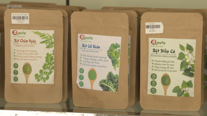 Thương hiệu "Rau ta" với các sản phẩm chính là bột nghiền siêu mịn của các loại rau xanh như cần tây, rau má, diếp cá... của chị Ngô Thị Hiền (Hải Phòng) giúp nâng tầm nông sản. Đồng thời, cách làm của chị Hiền còn lan tỏa tinh thần khởi nghiệp cho các bạn trẻ ở thành phố Cảng.