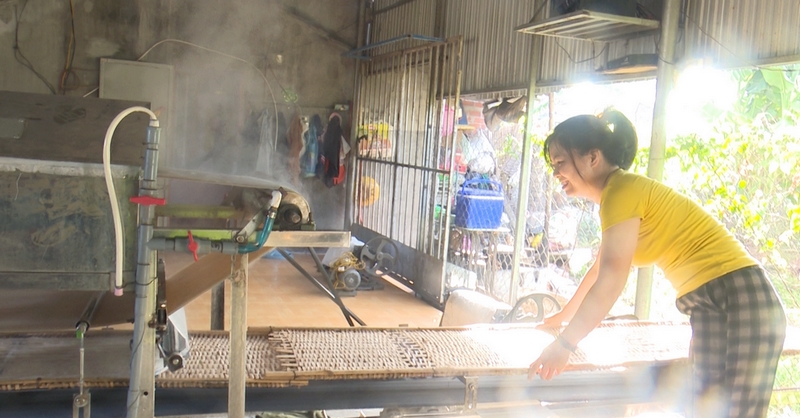 Đặc biệt vào các tháng cuối năm, nhu cầu tiêu thụ lớn thì sản lượng bún làm ra cũng tăng lên và thu nhập nhờ đó cũng tăng lên nhiều. Chị Thảo cho biết: “Nhờ có máy móc hỗ trợ nên các công việc làm bún cũng đỡ vất vả hơn trước rất nhiều, tôi và gia đình chỉ ngâm gạo, xếp vỉ, phơi bánh và bó bún, các công đoạn còn lại đều do máy làm”.