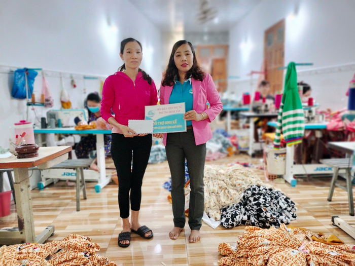 Sau khi mọi điều kiện đã cơ bản đầy đủ, bắt đầu tháng 11/2022, vợ chồng chị quyết định lấy số tiền giành dụm được với số tiền vay 50 triệu đồng từ Ngân hàng CSXH thị xã Hoài Nhơn do Hội LHPN phường giới thiệu để đầu tư xây xưởng và mua 12 máy may, 2 máy vắt sổ rồi bắt đầu nhận gia công trực tiếp về nhà làm. Bên cạnh đó, Hội LHPN phường Hoài Tân đã trao sinh kế 2 triệu đồng cho chị Trọng để góp phần động viên gia đình chị vơi bớt những khó khăn trong cuộc sống, tạo cơ hội, trao sức mạnh để chị phát triển kinh tế gia đình.