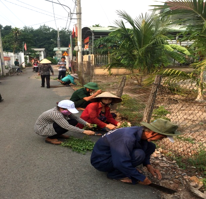 Chi hội của chị Long tham gia dọn vệ sinh đường làng, ngõ xóm