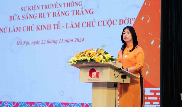 Phó Chủ tịch Thường trực Hội LHPN Việt Nam Đỗ Thị Thu Thảo (thứ 2 từ phải sang); nguyên Ủy viên TƯ Đảng, nguyên Chủ tịch Hội LHPN Việt Nam, Chủ tịch Hội Bảo vệ Quyền trẻ em Việt Nam Nguyễn Thị Thanh Hòa (thứ 4 từ phải sang) và các đại biểu dự Sự kiện truyền thông Bữa sáng Ruy băng trắng năm 2024 Sự kiện này nằm trong chuỗi hoạt động "Tăng cường quyền năng kinh tế cho phụ nữ, đặc biệt là phụ nữ bị mua bán trở về, phụ nữ di cư hồi hương" do Trung tâm Phụ nữ và Phát triển triển tổ chức.
