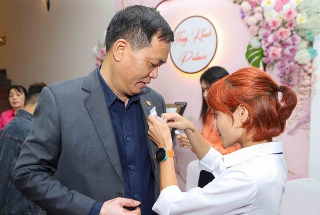 Các đại biểu tham dự sự kiện được cài Ruy băng trắng