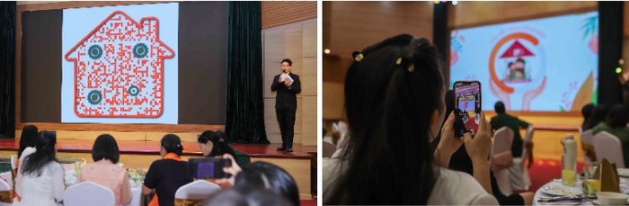 Các đại biểu, khách mời tham gia quét mã QR để ủng hộ chương trình hỗ trợ nạn nhân bị mua bán người