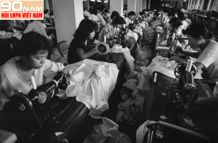 Công nhân tại một nhà máy dệt may ở TPHCM, năm 1988