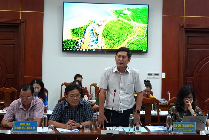 Đồng chí Dư Minh Hùng, Tỉnh ủy viên, Bí thư Huyện ủy Năm Căn phát biểu tại Hội thảo.