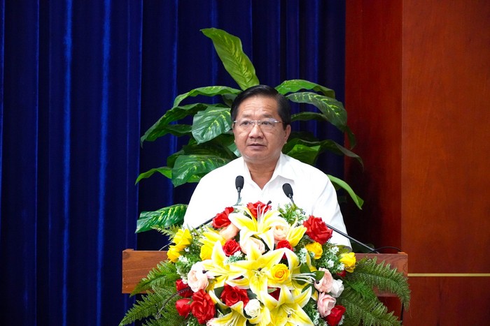 Đồng chí Lê Thanh Triều, Ủy viên Ban Thường vụ Tỉnh ủy, Trưởng Ban Dân vận Tỉnh ủy phát biểu tại Hội thảo.