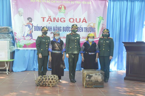 Đồng hành, chia sẻ với các em học sinh và phụ nữ có hoàn cảnh khó khăn vùng cao, Hội Phụ nữ Bộ Chỉ huy quân sự tỉnh Yên Bái tổ chức chương trình tặng quà, gồm 253 suất quà (chăn ấm, tất và đồ dùng học tập) cho các em học sinh tại Trường Mầm non Mí Háng, Màng Nhủ, Sáng Nhù và tặng lợn giống cho 2 hộ gia đình phụ nữ có hoàn cảnh khó khăn của xã Mồ Dề, huyện Mù Cang Chải.
