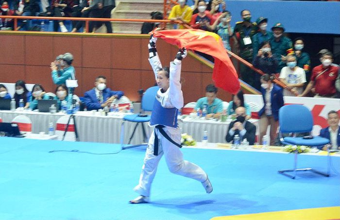 Trong ngày thi đấu các nội dung đối kháng đầu tiên (17/5) 2 nữ võ sĩ Trương Thị Kim Tuyền và Bạc Thị Khiêm đã mang về 2 Huy chương vàng sáng giá cho Việt Nam của môn taekwondo tại SEA Games 31.