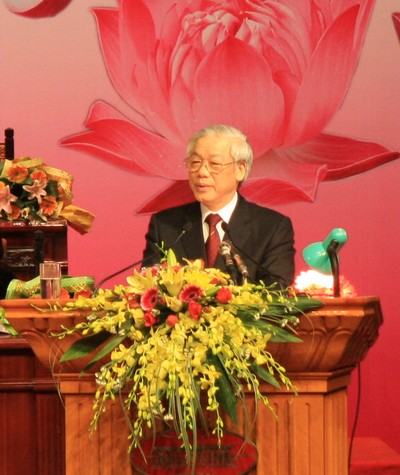 Tổng Bí thư cũng chỉ rõ vai trò quan trọng của Hội LHPN Việt Nam trong khối đại đoàn kết toàn dân tộc góp phần thực hiện thắng lợi Nghị quyết Đại hội lần thứ XI của Đảng; tiếp tục đổi mới toàn diện, mạnh mẽ theo con đường xã hội chủ nghĩa, tạo nền tảng để đến năm 2020 nước ta cơ bản trở thành nước công nghiệp theo hướng hiện đại; thực hiện chủ trương đẩy mạnh thực hiện các chính sách ổn định kinh tế vĩ mô, gắn tăng trưởng kinh tế với bảo đảm an sinh xã hội, cơ cấu lại nền kinh tế, chú trọng xây dựng và chỉnh đốn Đảng, phát huy dân chủ và củng cố khối đại đoàn kết dân tộc