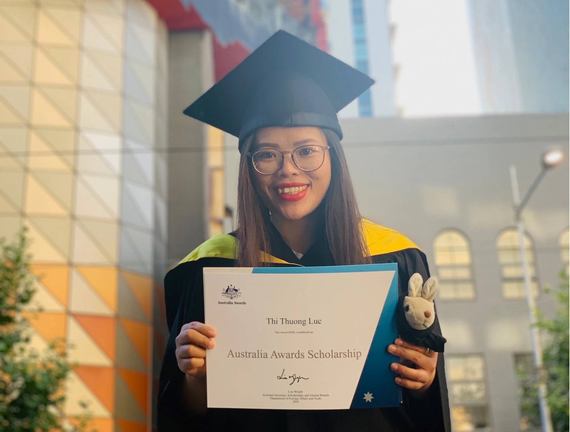 Không chỉ dừng ở việc tốt nghiệp Đại học, Thương đã tiếp tục phấn đấu để đạt học bổng của Chính phủ Australia và trở thành Thạc sĩ chuyên ngành Chính sách Công tại Đại học RMIT Australia