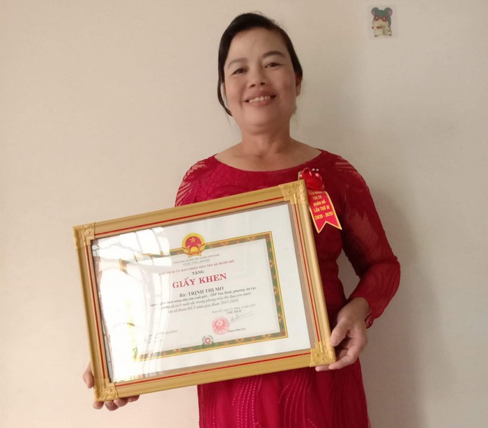 Với nhiều cố gắng trong hoạt động công tác Hội và gương mẫu đi đầu trong thực hiện mô hình trồng nấm theo tiêu chuẩn VietGAP, tiêu chí về vệ sinh an toàn thực phẩm, bảo vệ sức khỏe người tiêu dùng, chị Trịnh Thị Mơ đã nhận được nhiều giấy khen từ Hội LHPN, UBND các cấp qua các năm.