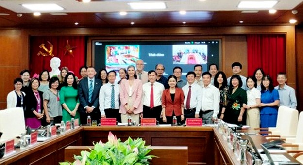 Các chuyên gia, địa biểu tham dự hội thảo khoa học tại điểm cầu Hà Nội chụp ảnh lưu niệm