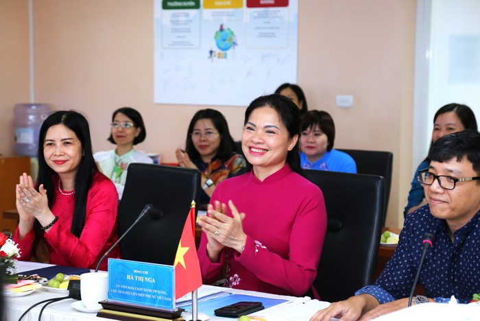 Chủ tịch Hội LHPN Việt Nam Hà Thị Nga bày tỏ sự vui mừng khi được chào đón đoàn đến thăm, làm việc tại Việt Nam và chúc đoàn có chuyến công tác thành công tốt đẹp