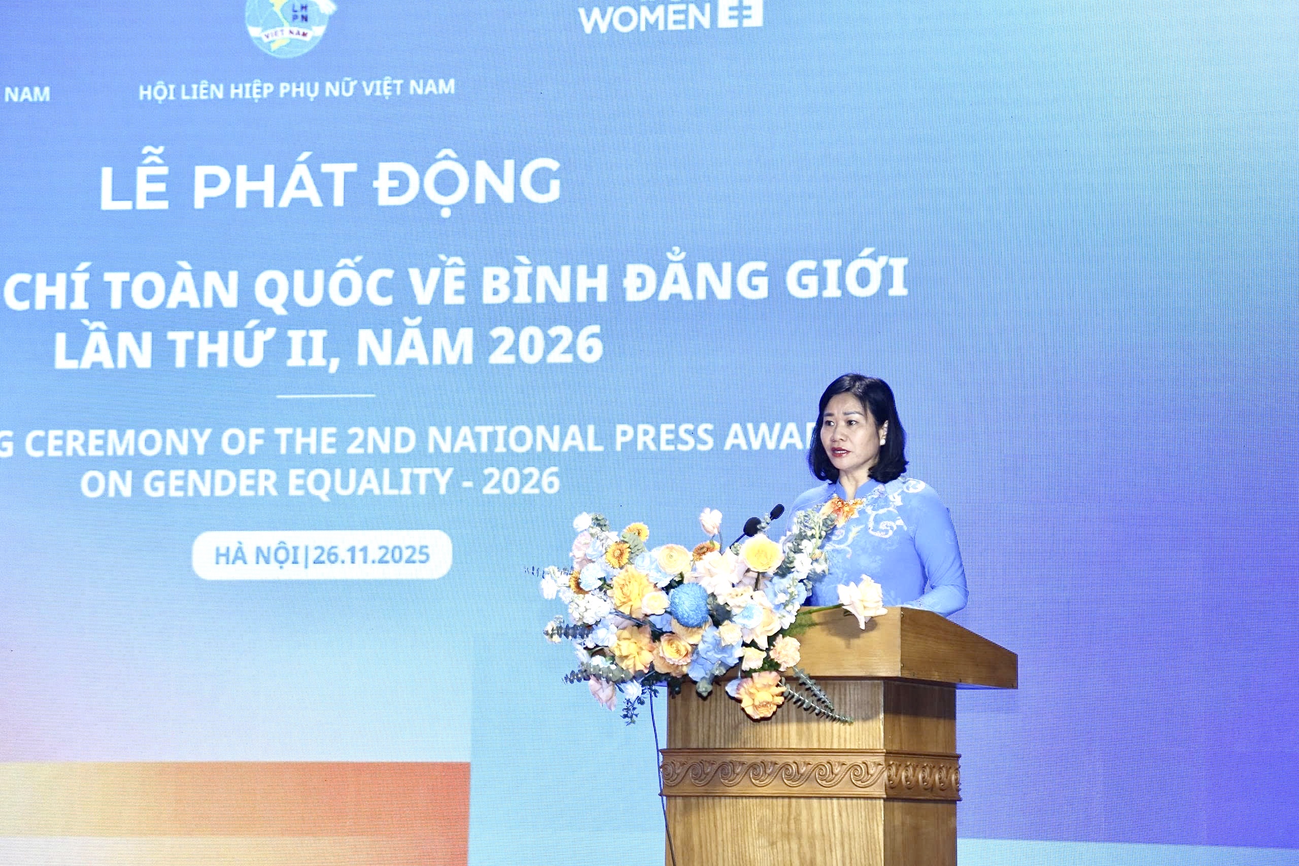 Ủy viên BCH TW Đảng, Phó Chủ tịch UBTW MTTQ Việt Nam, Chủ tịch Hội LHPN Việt Nam Nguyễn Thị Tuyến phát động Giải Báo chí toàn quốc về Bình đẳng giới lần thứ II, năm 2026 Lế phát động có sự hiện diện của Uỷ viên BCH TW Đảng, Phó Chủ tịch Uỷ ban TW MTTQ Việt Nam, Chủ tịch Hội LHPN Việt Nam Nguyễn Thị Tuyến; Thứ trưởng Bộ Nội vụ Nguyễn Thị Hà; Trưởng Đại diện UN Women tại Việt Nam Caroline Nyamayemombe; Phó Chủ tịch Hội LHPN Việt Nam Nguyễn Thị Minh Hương; Phó Chủ tịch Thường trực Hội Nhà báo Việt Nam Nguyễn Đức Lợi; lãnh đạo các ban, đơn vị của TW Hội; đại diện lãnh đạo Đảng ủy MTTQ, các đoàn thể TW, Bộ Công an, Bộ Văn hóa - Thể thao và Du lịch; cùng gần 50 nhà báo, phóng viên đến từ các cơ quan thông tấn báo chí, truyền hình của Trung ương và Hà Nội.