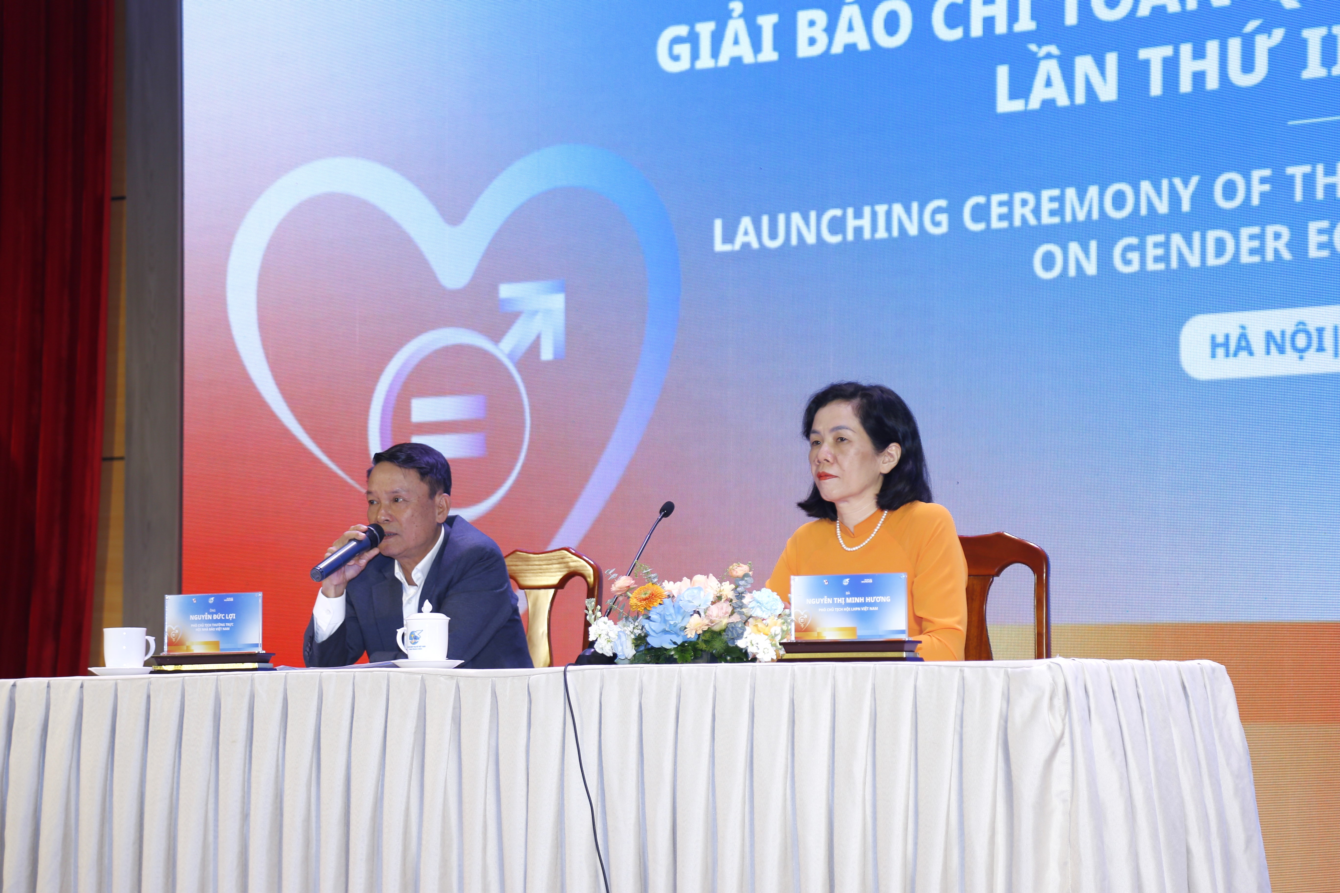 Phó Chủ tịch Hội LHPN Việt Nam Nguyễn Thị Minh Hương và Phó Chủ tịch Thường trực Hội Nhà báo Việt Nam Nguyễn Đức Lợi chủ trì phần hỏi đáp liên quan đến Giải Báo chí toàn quốc về Bình đẳng giới lần thứ II, năm 2026