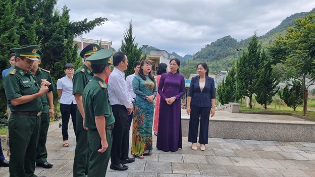 Cũng trong lịch trình công tác, cùng ngày, Đoàn công tác đã làm việc với Hội LHPN xã Pha Long, sau đó đến dâng hương tại Bia tưởng niệm các anh hùng Liêt sỹ; thăm và tặng quà gia đình ông Vàng Sảo Hòa và bà Lý Thị Sen ở xã Pha Long. Đoàn cũng đến thăm, tặng quà và động viên các cán bộ chiến sỹ ở Đồn Biên phòng Pha Long.