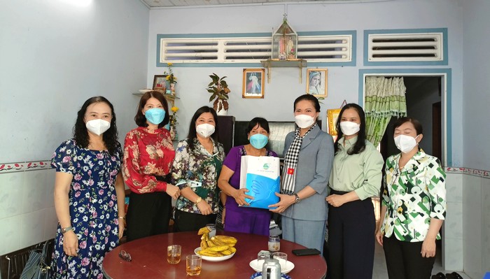 Đoàn thăm, chúc mừng Giáng sinh gia đình chị Nguyễn Thị Ái Hoa (áo tím)