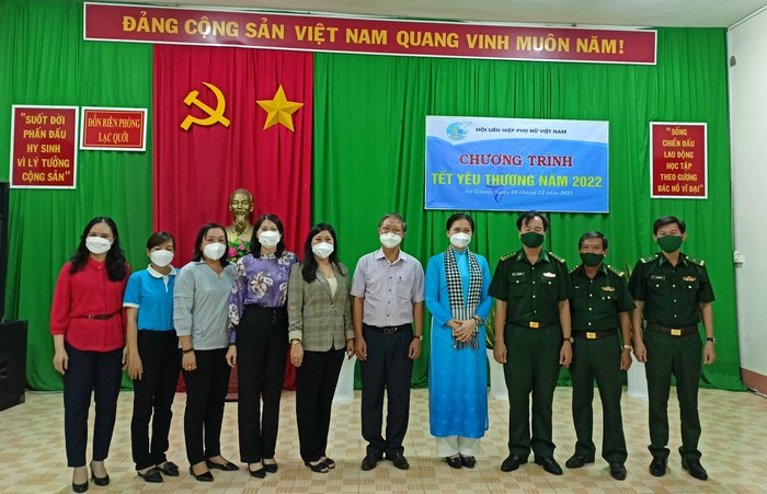 Chủ tịch Hội LHPN Việt Nam Hà Thị Nga (áo dài) tặng quà 10 hộ hội viên có hoàn cảnh khó khăn tại xã Lạc Quới, huyện Tri Tôn, tỉnh An Giang Đoàn đã đi thăm, chúc tết tại Đồn Biên phòng Lạc Quới, cùng tham dự có đồng chí Lê Bích Phượng, Tỉnh ủy viên, Chủ tịch Hội LHPN tỉnh An Giang; đồng chí Nguyễn Thị Quyến, Phó Chủ tịch Thường trực Hội LHPN tỉnh; Thượng tá Lê Hoàng Việt, Phó Chính ủy Bộ Chỉ huy Bộ đội Biên phòng tỉnh; đồng chí Cao Quang Liêm, Tỉnh ủy viên, Bí thư huyện ủy, Chủ tịch UBND huyện Tri Tôn cùng các đồng chí lãnh đạo xã Lạc Quới, đại diện Đồn Biên phòng Lạc Quới, huyện Tri Tôn và hội viên, phụ nữ.