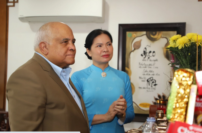 Uỷ viên BCH TW Đảng, Chủ tịch Hội LHPN Việt Nam Hà Thị Nga và Đại sứ Cuba tại Việt Nam Orlando Nicolas Hernandez Guill tưởng nhớ Chủ tịch Hồ Chí Minh, Đại tướng Võ Nguyên Giáp và Cố Chủ tịch Hội LHPN Việt Nam Nguyễn Thị Định (Ảnh: Báo PNVN)