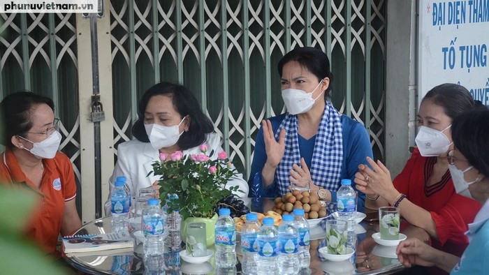 Chủ tịch Hội LHPN Việt Nam Hà Thị Nga thăm, tặng quà cho chị Cao Đặng Hoàng Duyên (44 tuổi, chi hội trưởng chi hội phụ nữ khóm 4, phường 1, TP Sa Đéc). Chủ tịch Hà Thị Nga trân trọng những đóng góp của chị Duyên trong công tác phòng chống, dịch Covid-19