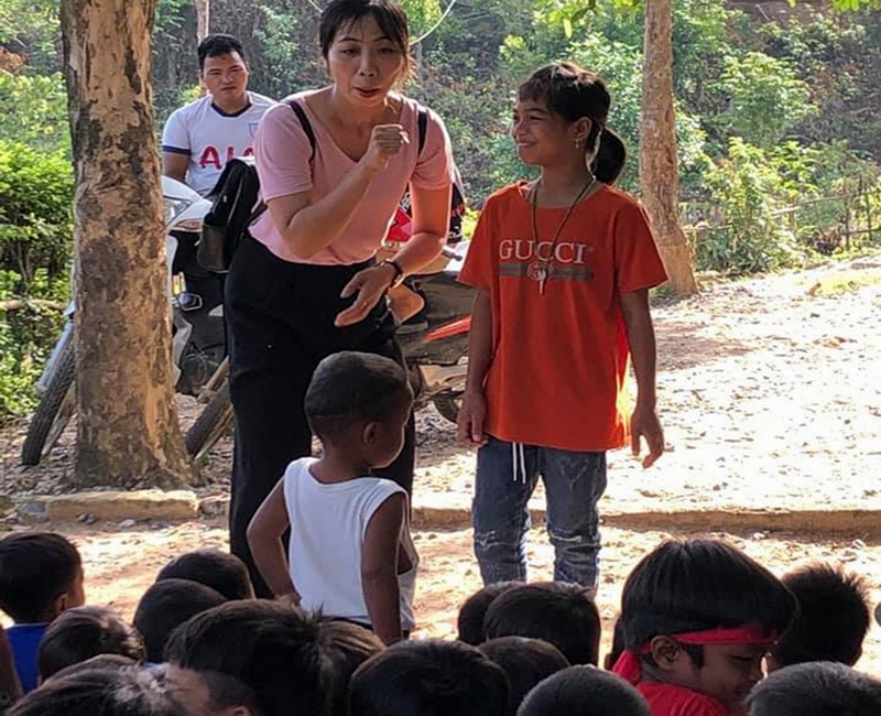 Chị Chung trong một buổi tuyên truyền về vệ sinh đảm bảo sức khỏe cho trẻ vùng cao