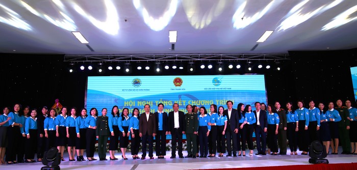 Phó Thủ tướng Thường trực Trương Hòa Bình, Chủ tịch Hội LHPN Việt Nam Hà Thị Nga, Trung tướng Đỗ Danh Vượng- Chính ủy Bội đội BP cùng đại diện các ban, ngành, lãnh đạo TW Hội chụp ảnh lưu niệm với các đại biểu tham dự hội nghị