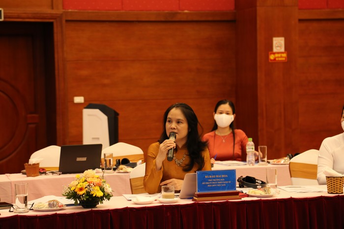 Bà Đào Mai Hoa, Phó ban Hỗ trợ phụ nữ phát triển kinh tế, TW Hội LHPN Việt Nam chia sẻ những hoạt động của Hội hỗ trợ phụ nữ phát triển kinh tế trong nền công nghiệp chuyển đổi số