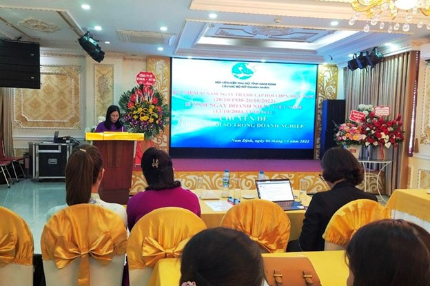 Tại Hội LHPN tỉnh Nam Định, trong chương trình sinh hoạt chuyên đề "Chuyển đổi số trong doanh nghiệp", các diễn giả đã chia sẻ về những kiến thức chuyển đổi số, để hỗ trợ cho các doanh nghiệp nữ có thêm kiến thức, bắt kịp xu thế, có kế hoạch trong phát triển doanh nghiệp của mình phù hợp với thời kỳ cách mạng công nghiệp 4.0, có thêm cơ hội hội nhập để phát triển thịnh vượng, đóng góp xây dựng phát triển kinh tế xã hội của quê hương, đất nước.