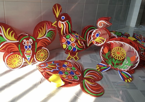 "Công đoạn pha phẩm màu khá đặc biệt, nếu pha không đúng tỉ lệ màu sẽ không sáng, không bám vào giấy kiếng, đèn sẽ xấu hoặc hư. Bố mẹ mình sẽ tỉ mỉ vẽ hình ảnh lên từng bộ phận, sau đó đợi khô, gắn lò xo đèn cầy, cột dây và đóng gói xếp lại.