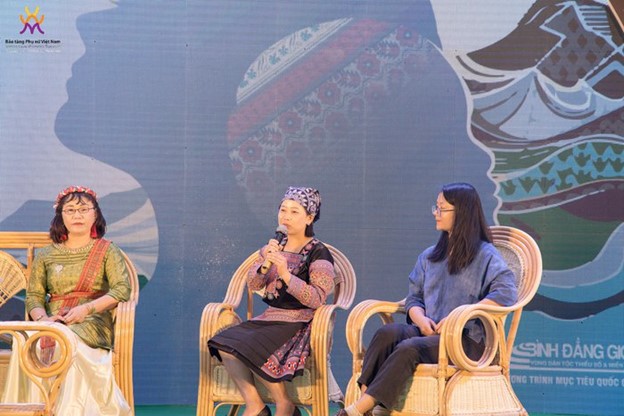 Sùng Y Múa (giữa) chia sẻ tại tọa đàm "Tiếng nói của phụ nữ"