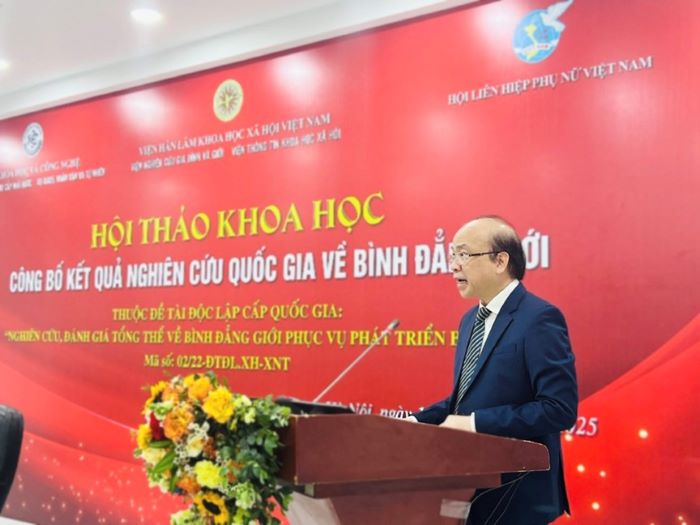 PGS.TS. Trần Thị Minh Thi (bìa phải), Phó Viện trưởng, Viện Thông tin Khoa học xã hội, Chủ nhiệm Đề tài, giới thiệu chung về Nghiên cứu Phát biểu khai mạc hội thảo, TS Phan Chí Hiếu - Chủ tịch Viện Hàn lâm Khoa học Xã hội Việt Nam - đánh giá cao những kết quả của nghiên cứu, góp phần làm rõ thực trạng quan hệ giới và những tiến bộ của nam giới, phụ nữ trên các lĩnh vực, cho phép phân tích những cơ hội và rào cản, cung cấp căn cứ xây dựng các khuyến nghị chính sách về bình đẳng giới và phát triển kinh tế xã hội phù hợp trong giai đoạn tới. Bên cạnh đó, hội thảo còn mang ý nghĩa thúc đẩy sự thay đổi trong tư duy xã hội, giúp cộng đồng hiểu rõ hơn về lợi ích, vai trò của bình đẳng giới đối với sự phát triển bền vững.