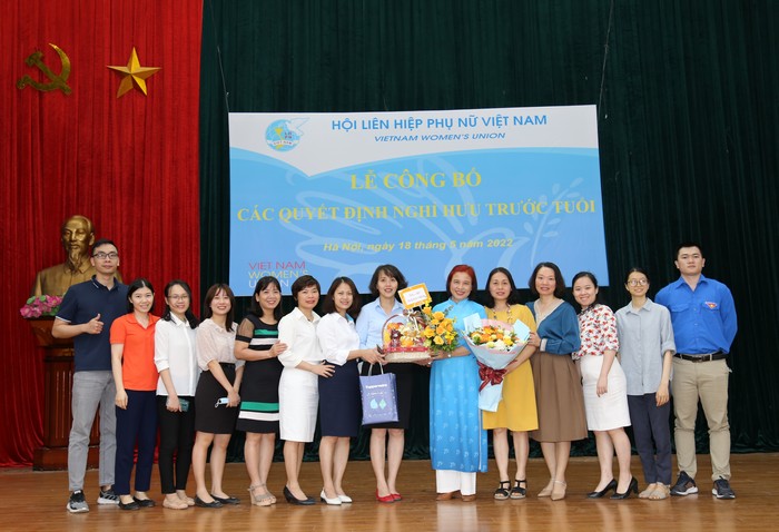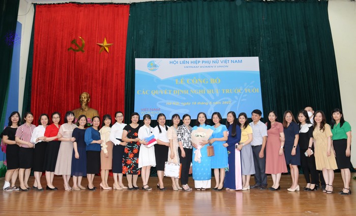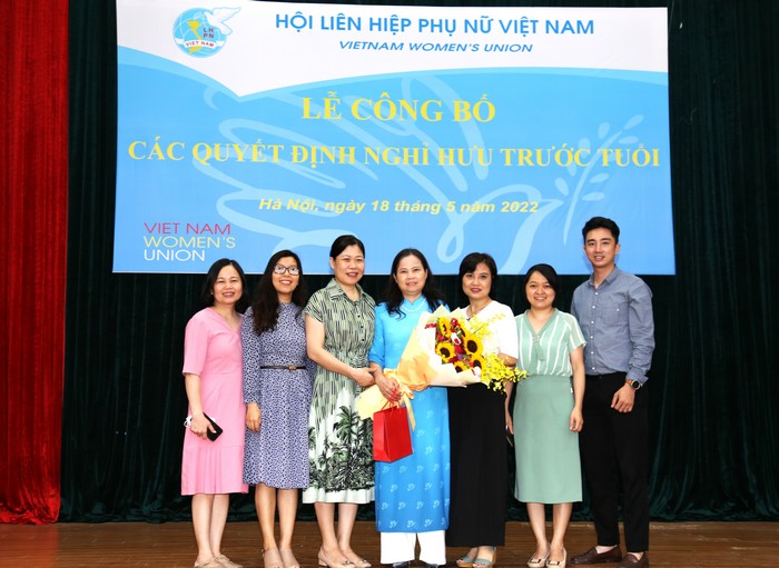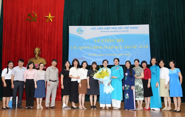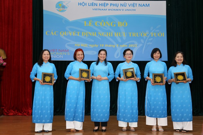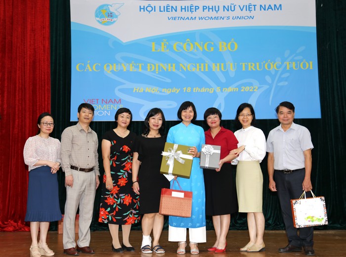 Thực hiện Quyết định số 467-QĐNS/TW ngày 5/3/2022 của Ban Bí thư TW Đảng về việc nghỉ hưu và các Quyết định của Đoàn Chủ tịch TW Hội LHPN Việt Nam về việc nghỉ hưu, nghỉ công tác chờ đủ tuổi nghỉ hưu đối với cán bộ không đủ tuổi tái cử Uỷ viên Ban Chấp hành TW Hội LHPN Việt Nam khoá XIII nhiệm kỳ 2022 – 2027, Đoàn Chủ tịch TW Hội LHPN Việt Nam tổ chức Lễ công bố Quyết định nghỉ hưu và Quyết định nghỉ công tác chờ đủ tuổi nghỉ hưu đối với: