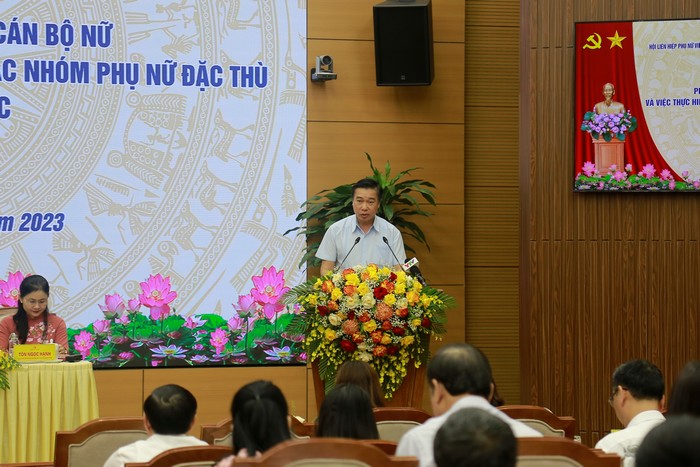 Ông cho rằng, để phụ nữ tham gia ngày càng nhiều hơn, chủ động hơn, đóng góp ngày càng lớn hơn cho sự phát triển của gia đình, cộng đồng, đất nước và thực hiện bình đẳng giới, cần phải triệt để quán triệt quan điểm của Đảng đã được nêu tại Nghị quyết số 11 “Công tác phụ nữ là trách nhiệm của cả hệ thống chính trị, của toàn xã hội và từng gia đình. Trong đó, hạt nhân lãnh đạo là các cấp ủy đảng, trách nhiệm trực tiếp và chủ yếu là cơ quan quản lý nhà nước các cấp, vai trò chủ thể là phụ nữ mà nòng cốt là các cấp Hội Liên hiệp Phụ nữ Việt Nam”. Đồng thời, đề nghị đại diện lãnh đạo Ban Dân vận các tỉnh, thành uỷ lắng nghe, tiếp thu ý kiến của các đại biểu và theo sát, đánh giá đúng tình hình Nhân dân, phụ nữ ở địa phương, xác định cụ thể các vấn đề liên quan đến phụ nữ, đến công tác phụ nữ tại địa bàn để có những tham mưu cụ thể cho cấp uỷ trong việc xác định các cơ chế ưu tiên của địa phương nhằm tổ chức thực hiện tốt các chủ trương, chính sách hiện có đối với các nhóm phụ nữ đặc thù, khó khăn; đề xuất, kiến nghị những giải pháp (kể cả chính sách) để tạo cơ hội việc làm bền vững và đảm bảo sự tiếp cận chính sách an sinh xã hội (về văn hoá, y tế, giáo dục…) cho nhóm lao động nữ di cư, phụ nữ dân tộc thiểu số; quan tâm đến nhu cầu thụ hưởng văn hoá, xã hội và kể cả việc làm của phụ nữ cao tuổi…