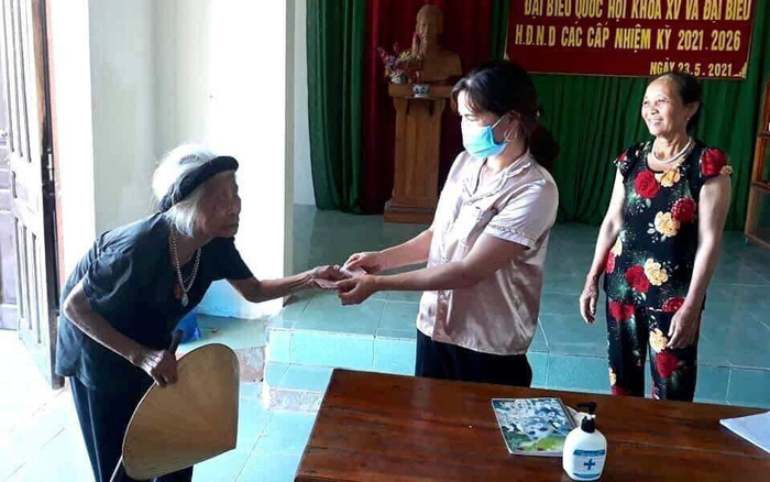 Vào ngày 24/6, khi nghe loa phát thanh thông báo về việc ủng hộ Quỹ phòng, chống dịch Covid-19, cụ bà 100 tuổi này đã một mình chống gậy đến trụ sở UBND xã ủng hộ số tiền nhỏ mà cụ dành dụm được. Thấy cụ đi đến và đưa ra số tiền ủng hộ, mọi người tại hội trường vô cùng xúc động.