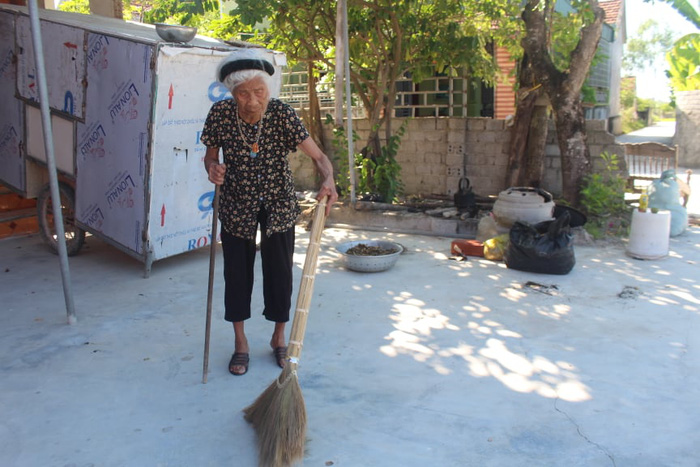 Mặc dù đã 100 tuổi nhưng hằng ngày cụ Nhung vẫn giúp con cháu làm việc nhà.