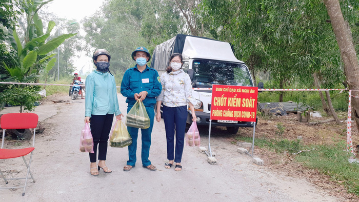 Bà Lương Quỳnh Trang - Chủ tịch Hội phụ nữ xã Nghi Ân chia sẻ: "Ban đầu Hội phụ nữ đứng ra đảm nhận việc phục vụ các suất ăn cho lực lượng bám chốt, sau đó thì có thêm 13 chi hội và các cơ quan, tổ chức cùng tham gia. Mặc dù nghỉ hè nhưng nhiều giáo viên của trường đã rất nhiệt tình tham gia, người mang gạo, người mang rau củ và thức ăn đến cùng nấu. Ngoài ra, nhà trường còn vận động được hơn 5,7 triệu đồng để đóng góp vào kinh phí nấu ăn, phục vụ cho các chốt. Thường mỗi bữa, các tổ phụ trách sẽ nấu 35-40 suất cho các chốt từ sáng, trưa, tối. Nhiều tổ còn nấu cả bữa khuya mang ra tận chốt, giúp lực lượng trực chốt có sức khỏe để làm nhiệm vụ".