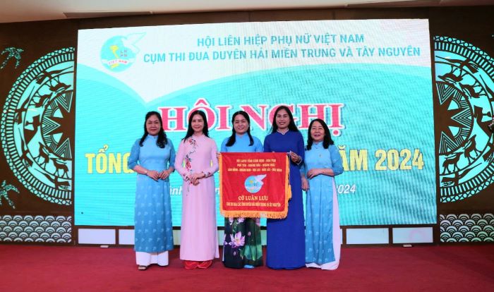Theo đó, năm 2024, Hội LHPN các tỉnh thuộc Cụm thi đua đã có nhiều điểm sáng tạo, cách làm mới trong công tác lãnh đạo, chỉ đạo, điều hành, phối hợp, tổ chức triển khai thực hiện phong trào thi đua, khâu đột phá, các nhiệm vụ công tác hội và chủ đề năm. Một số kết quả nổi bật như: Các tỉnh trong Cụm đã giúp 14.243 hộ gia đình đạt tiêu chí “Gia đình 5 không, 3 sạch”, “Gia đình 5 có, 3 sạch”; giúp 9.314 hộ thoát nghèo, thoát cận nghèo; trồng trên 515.000 cây xanh; phát triển 51.380 hội viên mới và 2.039 hội viên danh dự. Trong năm, các tỉnh đã vận động nguồn lực hỗ trợ thành lập mới 54 hợp tác xã và tổ chức tập huấn nâng cao năng lực cho 5.771 chị là chủ doanh nghiệp, quản lý hợp tác xã, chủ hộ kinh doanh. Đồng thời, phối hợp, huy động nguồn lực, hỗ trợ ngày công, cây giống, con giống, phương tiện sinh kế, mái ấm tình thương, hỗ trợ vay vốn, hỗ trợ kiến thức… cho hội viên với tổng trị giá trên 35 tỷ đồng. Các tỉnh đã nhận đỡ đầu mới 791 trẻ em mồ côi, hỗ trợ quà, tiền mặt với tổng trị giá hơn 26 tỷ đồng. Về kết quả thực hiện hoạt động chung, trong năm 2024, các tỉnh trong Cụm đã tặng sinh kế cho 13 phụ nữ nghèo thuộc tỉnh Khánh Hòa và Đắk Lắk với trị giá 100 triệu đồng...