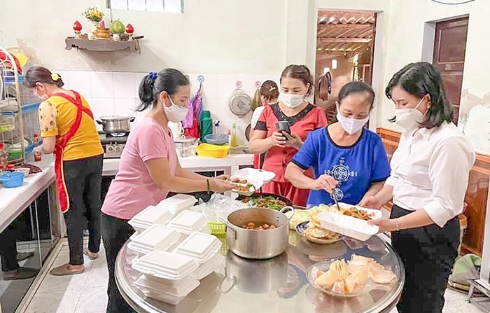 “Góc bếp yêu thương” của cán bộ, hội viên phụ nữ Phường 1, TP. Đông Hà, tỉnh Quảng Trị luôn đỏ lửa mỗi ngày để nấu những bữa cơm ngon phục vụ tuyến đầu chống dịch