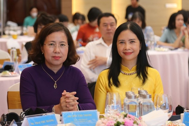 Bà Đào Mai Hoa (phải) - Phó ban phụ trách, Ban Hỗ trợ phụ nữ phát triển kinh tế, Hội LHPN Việt Nam - chia sẻ tại toạ đàm