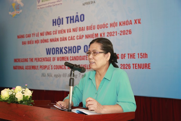 Tại hội thảo, các đại biểu đã tham luận, thảo luận tập trung làm rõ các nguyên nhân, rào cản hạn chế cơ hội tham gia lãnh đạo, quản lý, tham gia cấp ủy, các cơ quan dân cử của phụ nữ; Chia sẻ những kinh nghiệm, sáng kiến trong thực hiện công tác cán bộ nữ và giới thiệu nữ ứng cử viên như: công tác đào tạo, bồi dưỡng, phát hiện nguồn, quy hoạch, bổ nhiệm, giới thiệu cán bộ nữ ứng cử…; Đề xuất giải pháp hữu hiệu giúp nâng cao tỷ lệ phụ nữ tham gia chính trị ở Việt Nam, đặc biệt là tỷ lệ nữ ứng cử viên và nữ đại biểu Quốc hội khóa XV, đại biểu Hội đồng nhân dân nhiệm kỳ 2021-2026.