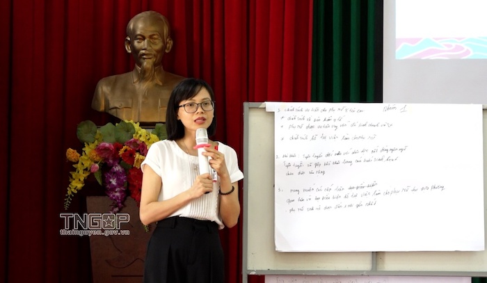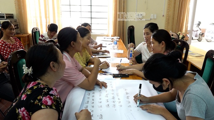 Các hội viên Hội LHPN xã Phương Giao tham gia thảo luận về các chính sách liên quan đến phụ nữ, trẻ em vùng DTTS.