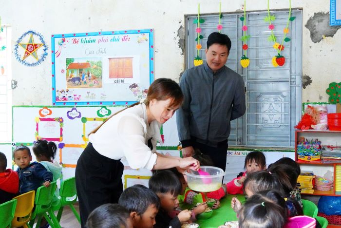 Cô Viên cho biết: “Từ thị trấn Mèo Vạc để đến với điểm trường Sán Sì Lủng của xã Cán Chu Phìn phải vượt qua những dãy núi tai mèo hiểm trở, điều kiện sống khó khăn… nhưng bằng tình thương yêu học sinh, chúng tôi sẵn sàng vượt qua những khó khăn. Lớp tôi hiện có 33 em thuộc khối 5 tuổi, phần lớn các em có hoàn cảnh gia đình khó khăn, nhà lại ở xa điểm trường nên tôi vừa là cô giáo dạy học vừa là người mẹ chăm sóc các em”.