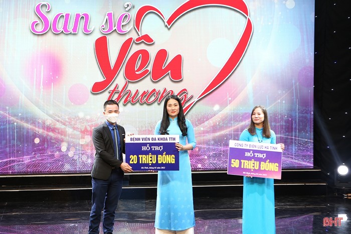 Tại chương trình, ban tổ chức đã triển khai trao biểu trưng đóng góp của các đơn vị với tổng số tiền gần 6 tỷ đồng cho 2 chương trình: "Mẹ đỡ đầu trẻ mồ côi” và “Triệu phần quà san sẻ yêu thương”.