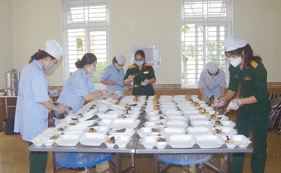 Tạm gác việc gia đình, chị em phụ nữ ở các chi hội phụ nữ thuộc Bộ CHQS tỉnh tại các điểm cách ly tập trung của tỉnh và huyện vẫn ngày đêm thầm lặng chăm lo từng bữa ăn cho người dân đang cách ly. Họ đã và đang góp một phần công sức để đẩy lùi đại dịch Covid-19.