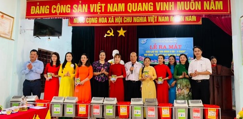 Trao tặng thùng đựng rác cho Câu lạc bộ "Gia đình 5 có, 3 sạch"
